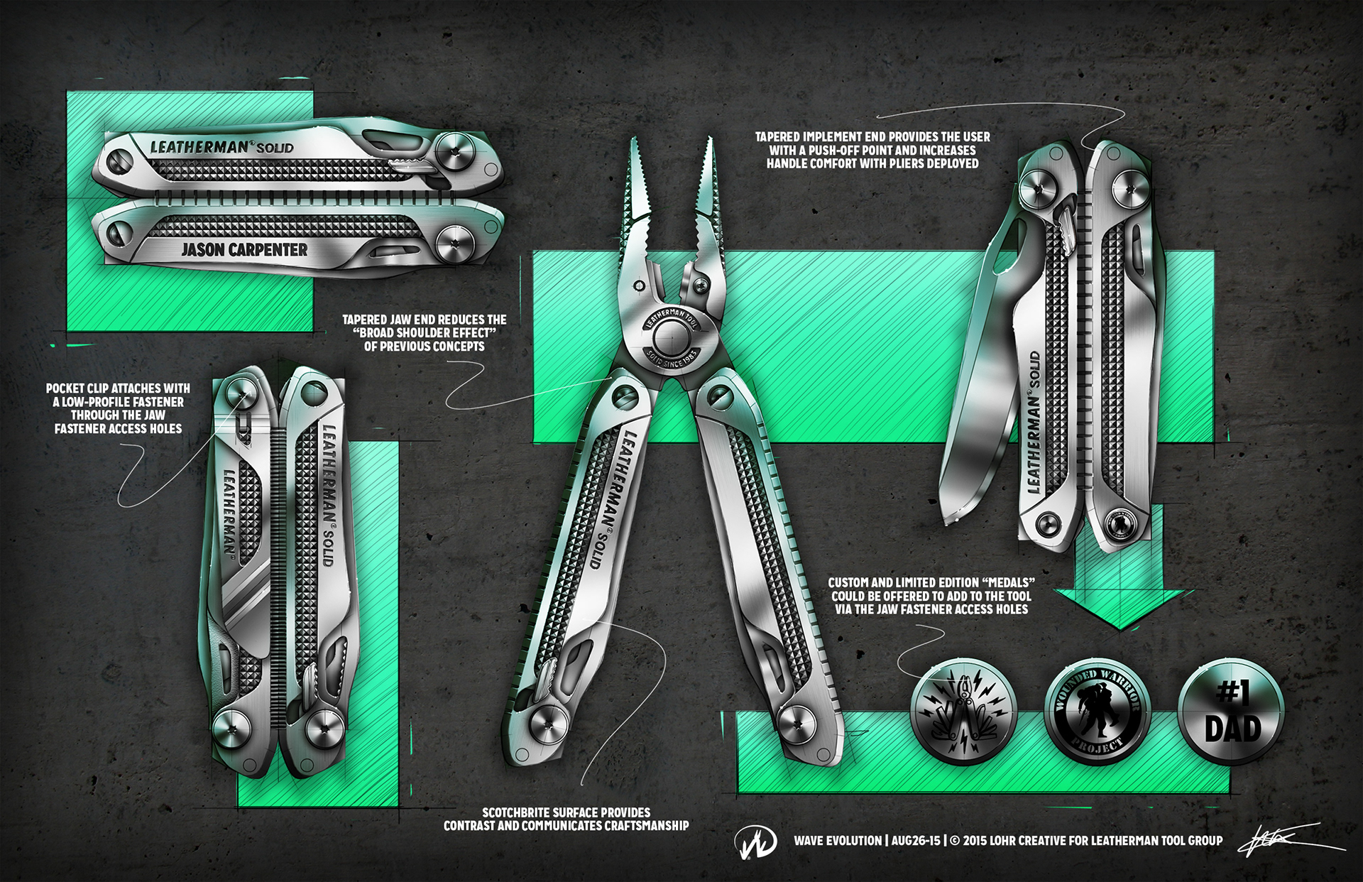 I was part of the team that developed the key initiatives and early concepts for the upcoming FREE P2 and P4 multi-tools. Critical differentiators that made it to production include one-hand-opening pliers, no nail nicks (the "No Digging" initiative!), and epic haptics. The final industrial design ultimately took another path, but shown below are the concepts left on the cutting room floor. Note the use of magnets. :D